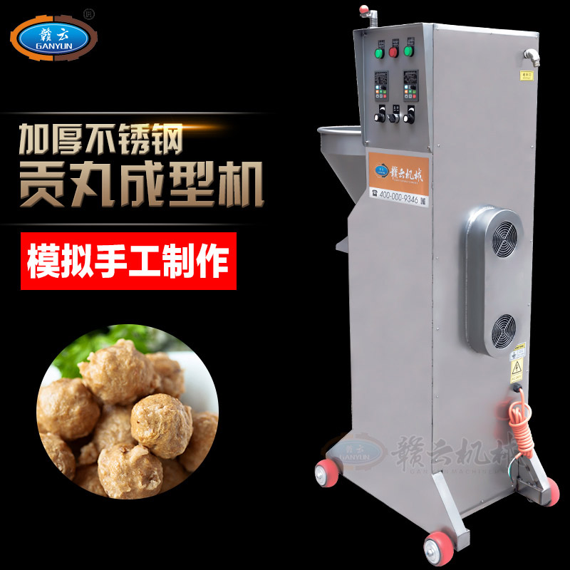 贛云牌貢丸成型機采用雙速系統(tǒng),推料和挖出成型各用一個電機,挖出成型采用半球形舀勺仿人工制作,設(shè)計科學合理,采用全不銹鋼材質(zhì),符合食品衛(wèi)生加工要求貢丸大小由模具控制,每分鐘可加工成型200粒貢丸,機器的操作和清洗都很方便。隨機配成型模具:27mm、21mm和32mm?啥ㄖ18mm,34mm模具哦。