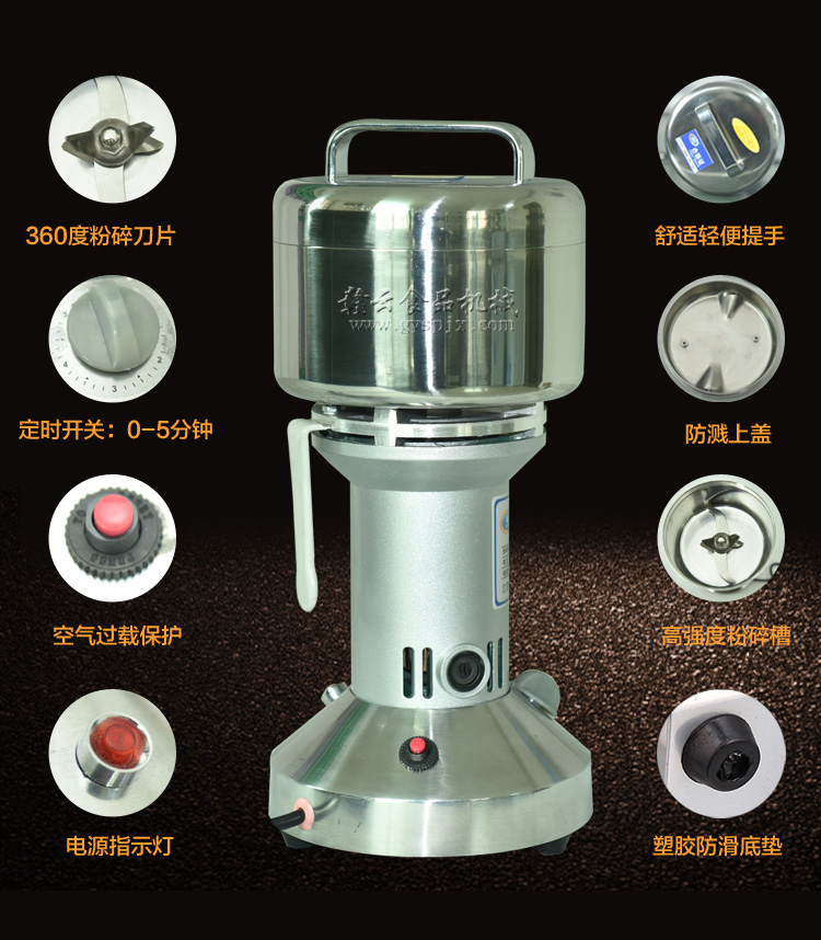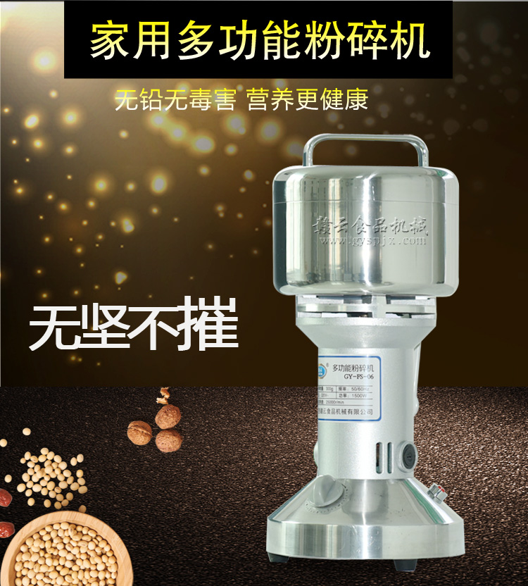 贛云系列多功能粉碎機(jī)采用純銅高速電機(jī)帶動(dòng)粉碎刀片將物料快速打成粉末,可用于粉碎五谷、雜糧、田七、阿膠、白叁等,一般粉碎時(shí)間1-2分鐘即可,新款粉碎機(jī)改保險(xiǎn)絲為空氣過載保護(hù)器,使用更安全,我廠提供的粉碎機(jī)有100克-2500克不同型號(hào)的多功能粉碎機(jī)。