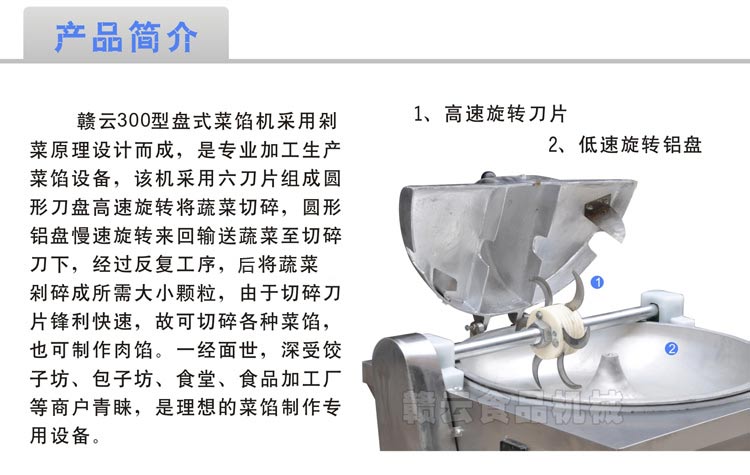 我廠生產(chǎn)的CX-300型菜餡機,主要將各種根莖葉類蔬菜加工成餡狀,是面食加工業(yè)制作蒸包餡、水餃餡和飼養(yǎng)加工蔬菜飼料的搭配設(shè)備。