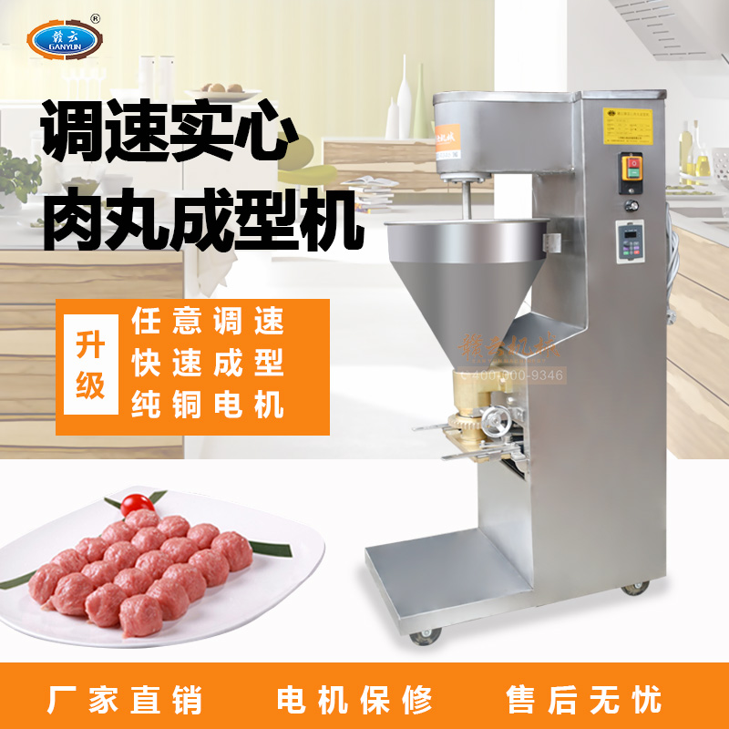 調(diào)速肉丸成型機(jī)是在實(shí)心肉丸成型機(jī)的基礎(chǔ)上,改開關(guān)控制為變頻數(shù)字調(diào)速控制,成型速度可變。是做實(shí)心豬肉丸、魚肉丸、牛肉丸成型不二選擇。詳細(xì)技術(shù)參數(shù)可參考實(shí)心肉丸成型機(jī)GY-SX-120型肉丸成型機(jī)。