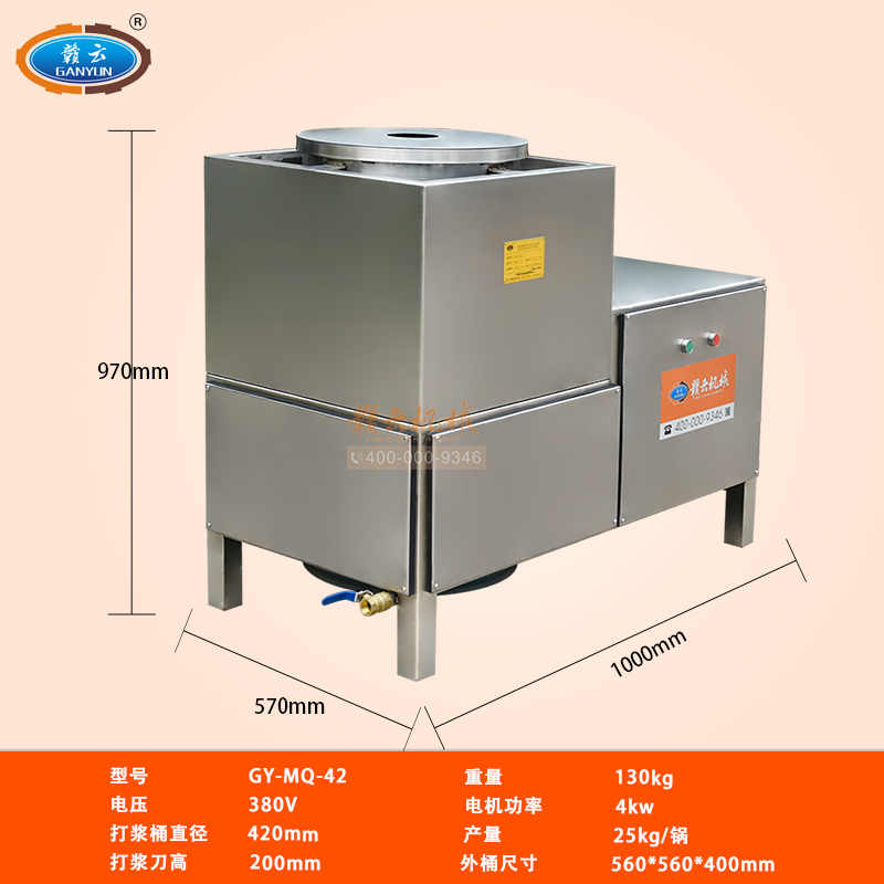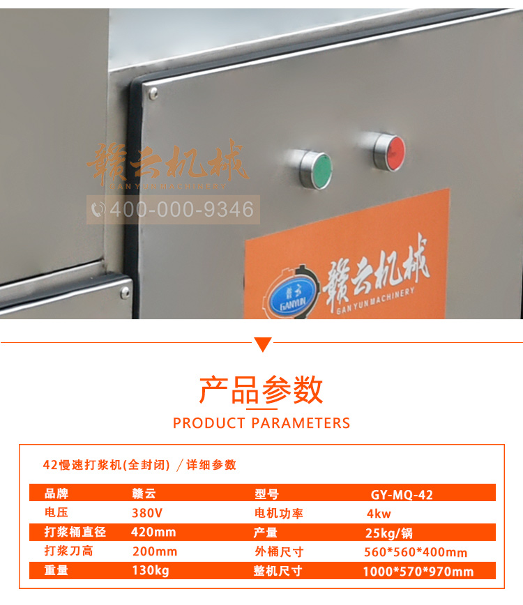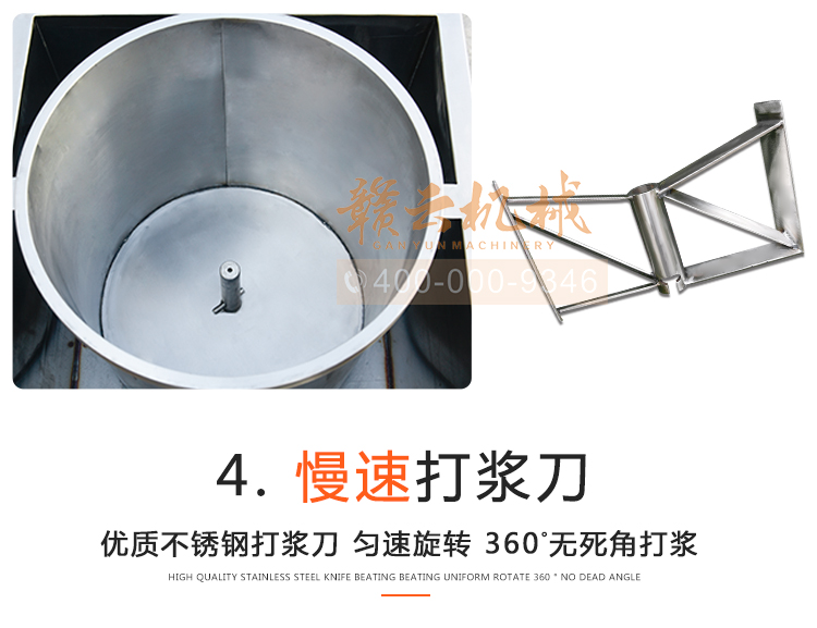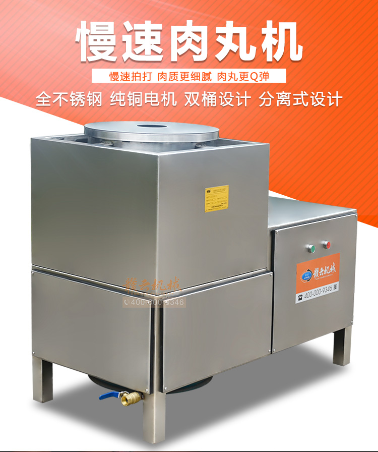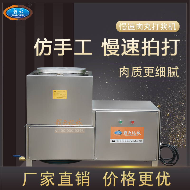 中大型魚丸打漿機采用全不銹鋼材質,有效的保護了電動機,操作上更安全,制作魚丸更衛生,42型慢速肉丸打漿機可一次加工50斤左右魚漿,是中型魚丸,牛肉丸加工優選慢速拍打設備之一,贛云歷經十年品質,為您加工魚丸,牛肉丸等設備保駕護航。