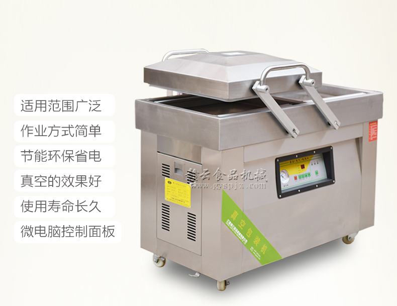 3、壓下真空蓋,面板上的抽氣指示燈亮,真空泵開始抽氣,機蓋即被自動吸引,抽真空時間可根據(jù)包裝要求調節(jié)適當時間。