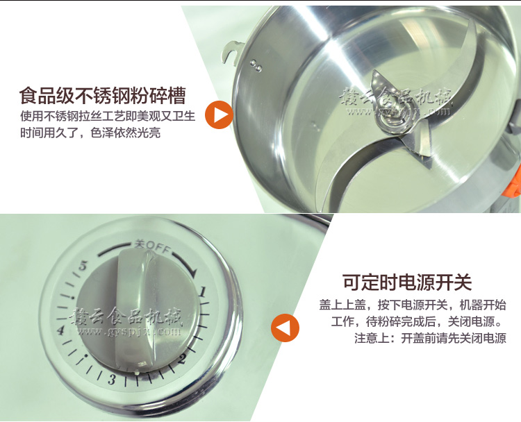 贛云系列多功能粉碎機采用純銅高速電機帶動粉碎刀片將物料快速打成粉末,可用于粉碎五谷、雜糧、田七、阿膠、白叁等,一般粉碎時間1-2分鐘即可,新款粉碎機改保險絲為空氣過載保護器,使用更安全,我廠提供的粉碎機有100克-1000克不同型號的多功能粉碎機。