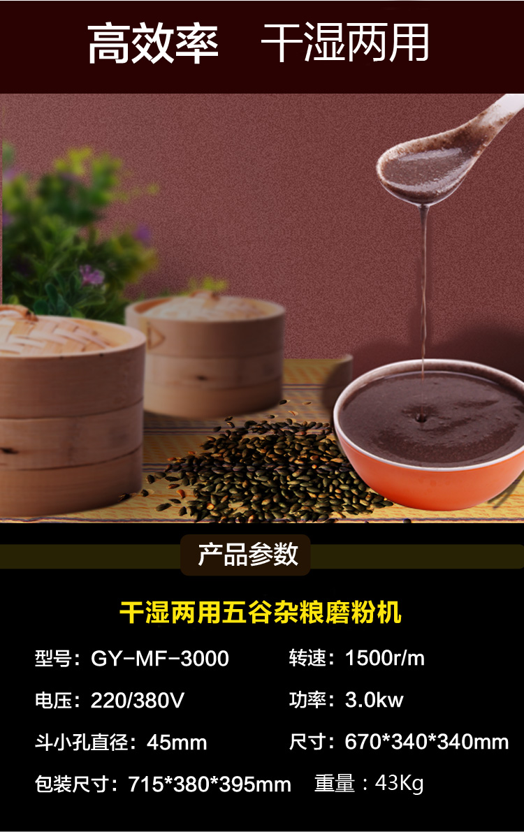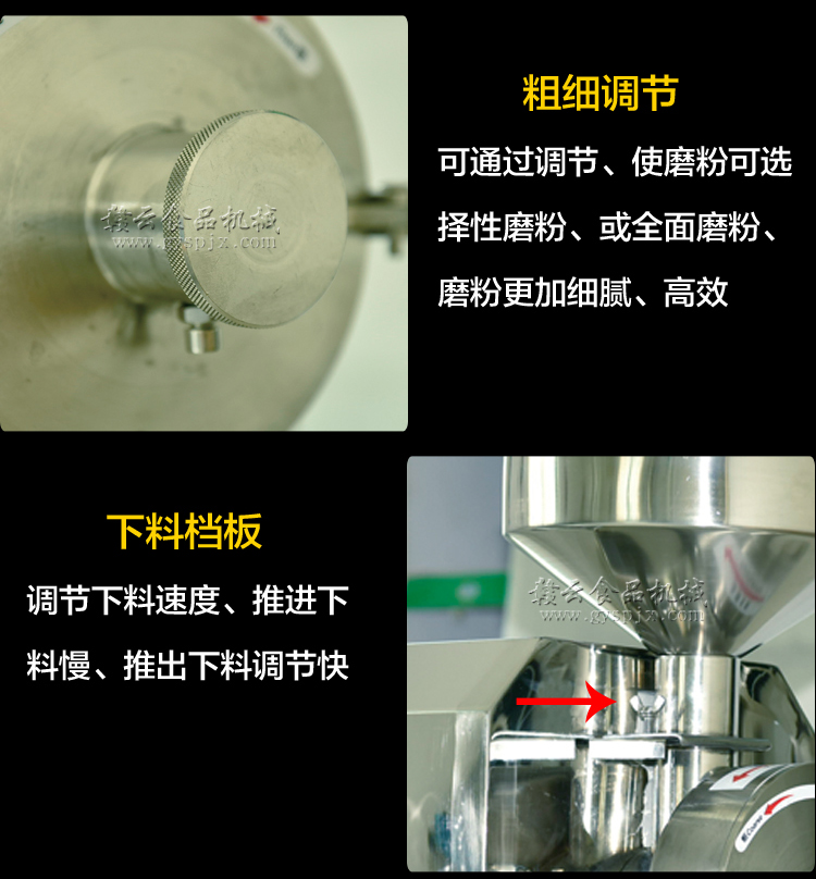 贛云不銹鋼磨粉機(jī)有1100型、2200型和3000型三種型號(hào),這款是3000型不銹鋼磨粉機(jī),造型外觀和2200型相同,采用干濕磨盤以及全不銹鋼構(gòu)架,外形美觀大方,亮光,不銹鋼色澤清洗,采用3kw大功率純銅電機(jī)帶動(dòng)磨盤轉(zhuǎn)動(dòng),磨粉細(xì)度可調(diào),適合磨不同粗細(xì)的五谷,米漿等。