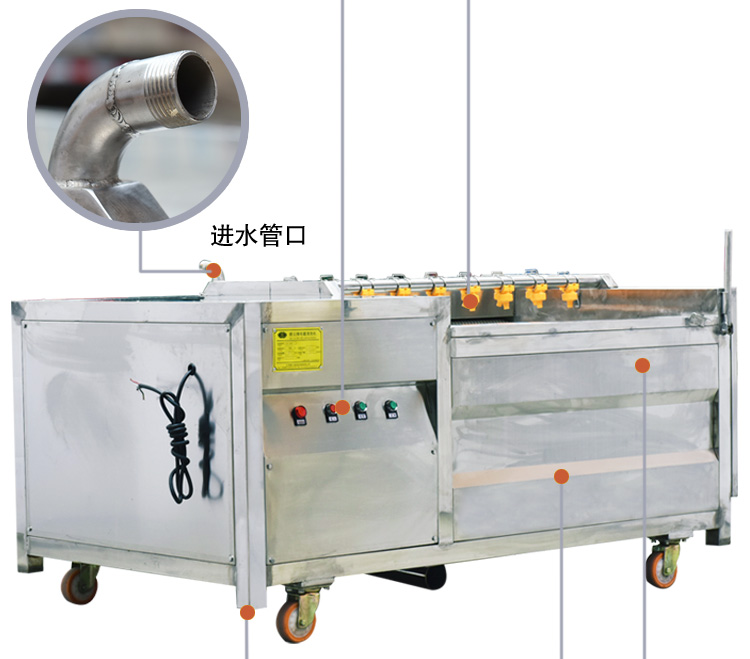毛輥式連續(xù)自動(dòng)清洗機(jī)采用食品級(jí)不銹鋼制造而成、堅(jiān)固耐用,毛輥全部采用優(yōu)質(zhì)樹(shù)脂、韌性高、耐磨性好,從而達(dá)到洗潔凈高、節(jié)省勞力、節(jié)水。