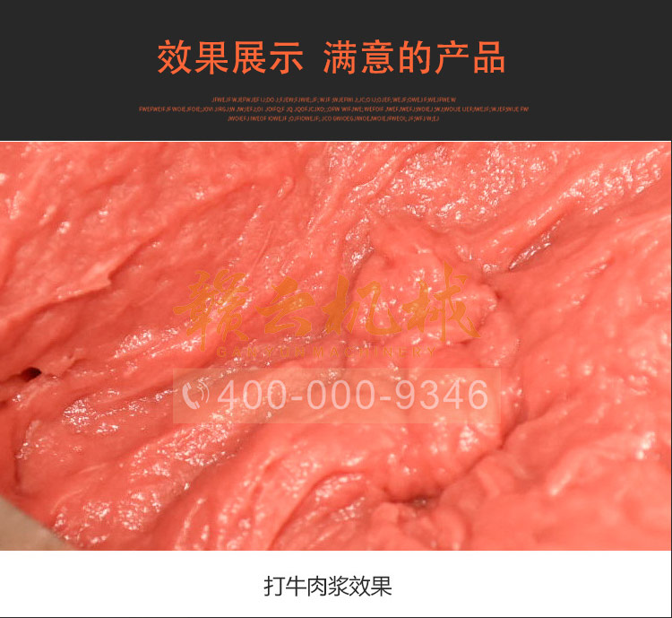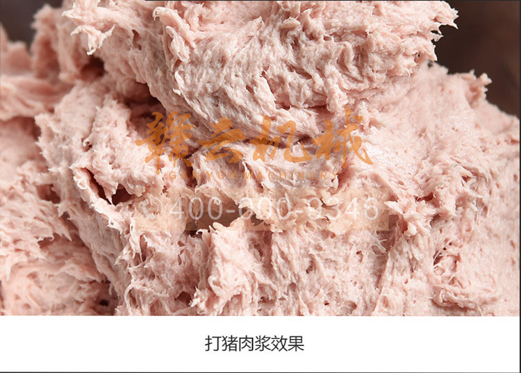 所產(chǎn)肉漿比高速類打的肉漿富有口感,不同普遍效果,工作穩(wěn)定,產(chǎn)量高質(zhì)量好,升溫低,其工作原理調(diào)速使用先慢揉將肉抱團(tuán)拉絲,慢慢加工成泥漿后無級(jí)變速拍打,使肉類纖維中發(fā)貨最大的吸水量和重組織性強(qiáng),所產(chǎn)肉丸制品等松脆有彈性,能漂浮于水面,蒸煮不裂開,火鍋上佳。