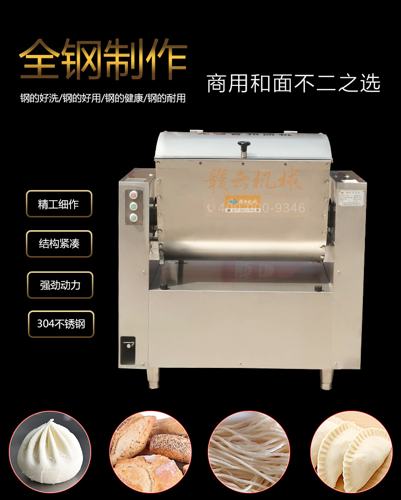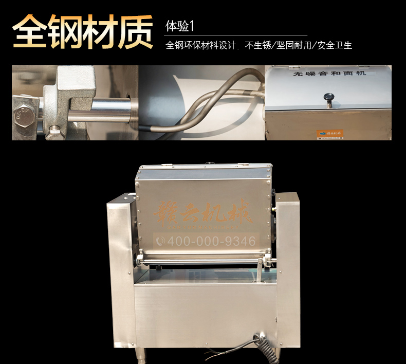 商用和面機(jī),全不銹鋼無(wú)噪音商用和面攪拌機(jī),本系列有15kg、25kg、50kg、75kg、100kg、150kg6個(gè)型號(hào),其中15kg、25kg為手動(dòng)倒料,50kg以上有自動(dòng)翻斗倒料,本機(jī)器和面攪拌桶及攪拌軸均采用304不銹鋼抗氧化處理設(shè)計(jì),安全衛(wèi)生,機(jī)體采用201不銹鋼板材,組合而成全鋼和面機(jī)構(gòu)架。符合軍供品質(zhì)衛(wèi)生需求。是商用和面攪拌好助手。