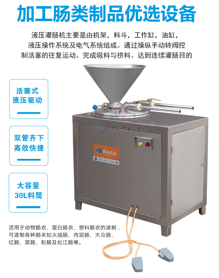 主頁-> 肉制品前處理->專用灌腸設(shè)備->30升液壓灌腸機(jī)