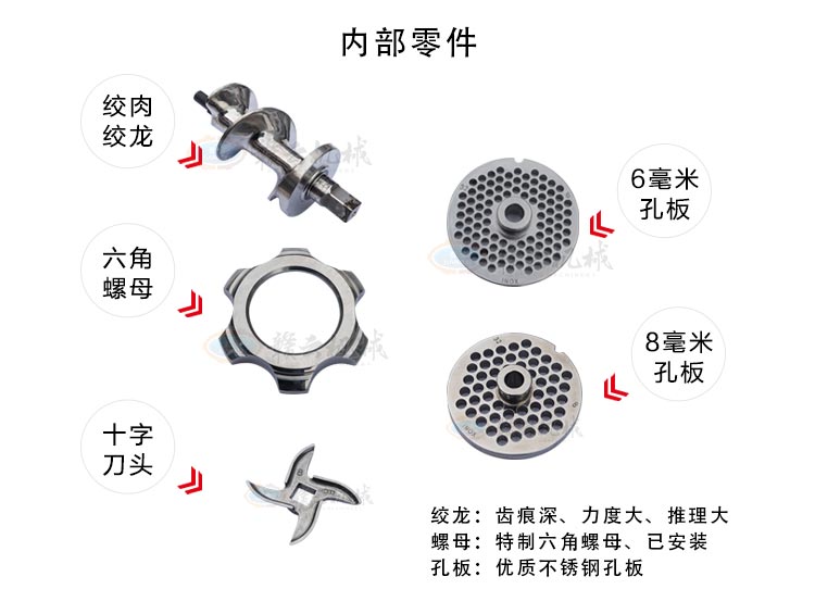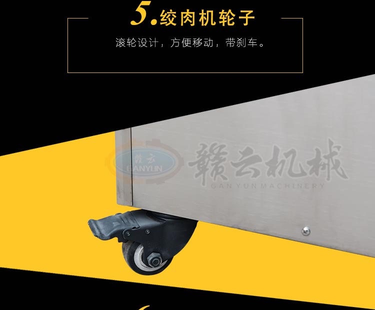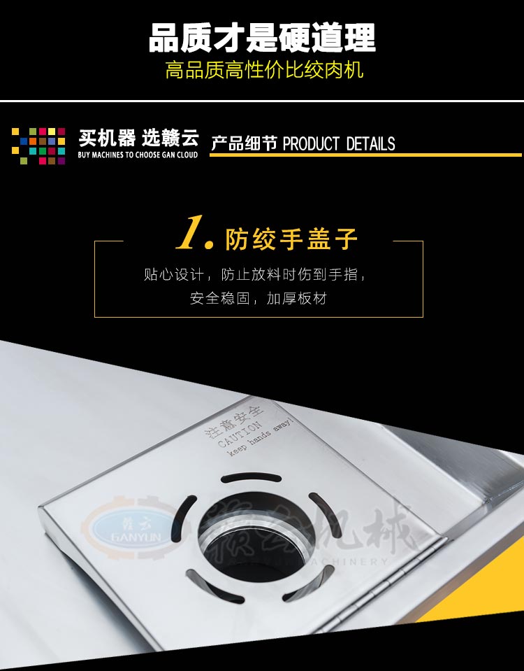 高質(zhì)量高性價(jià)比絞肉機(jī) 防絞手蓋子 貼心設(shè)計(jì) 防止絞肉時(shí)傷到手指 放料托盤 包邊設(shè)計(jì) 安全放心 防水開關(guān)人性化設(shè)計(jì)  人體工程學(xué)把手 方便搬運(yùn) 配有萬(wàn)向輪 裝配有純銅電機(jī)