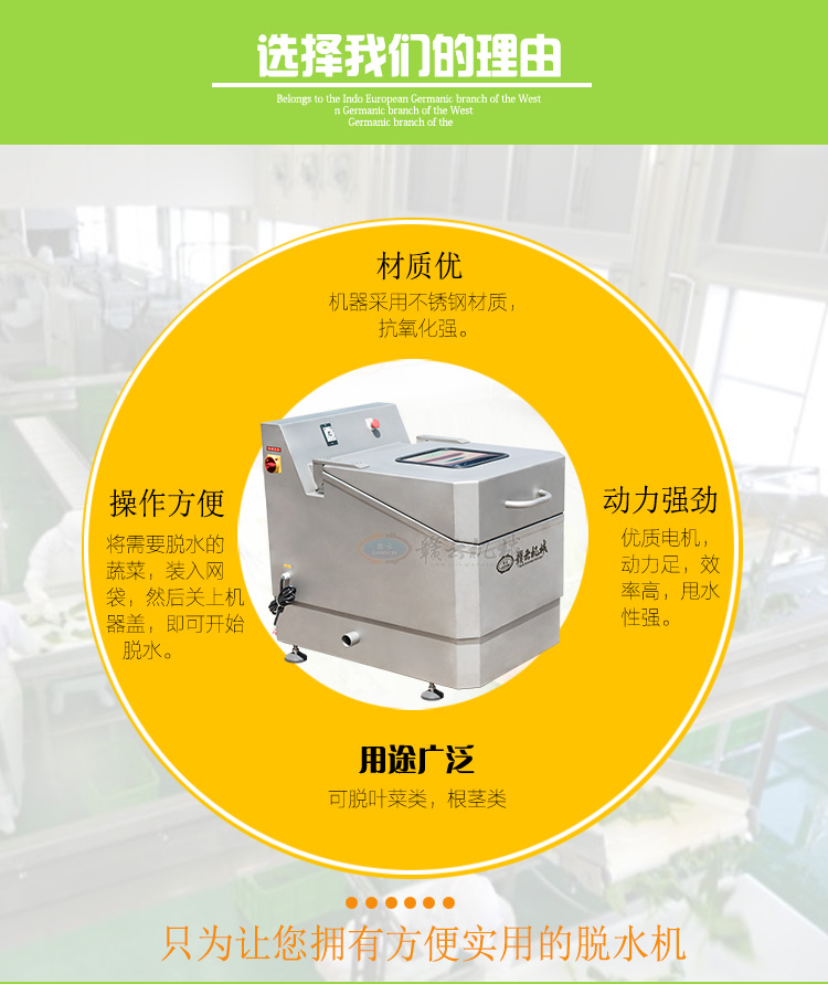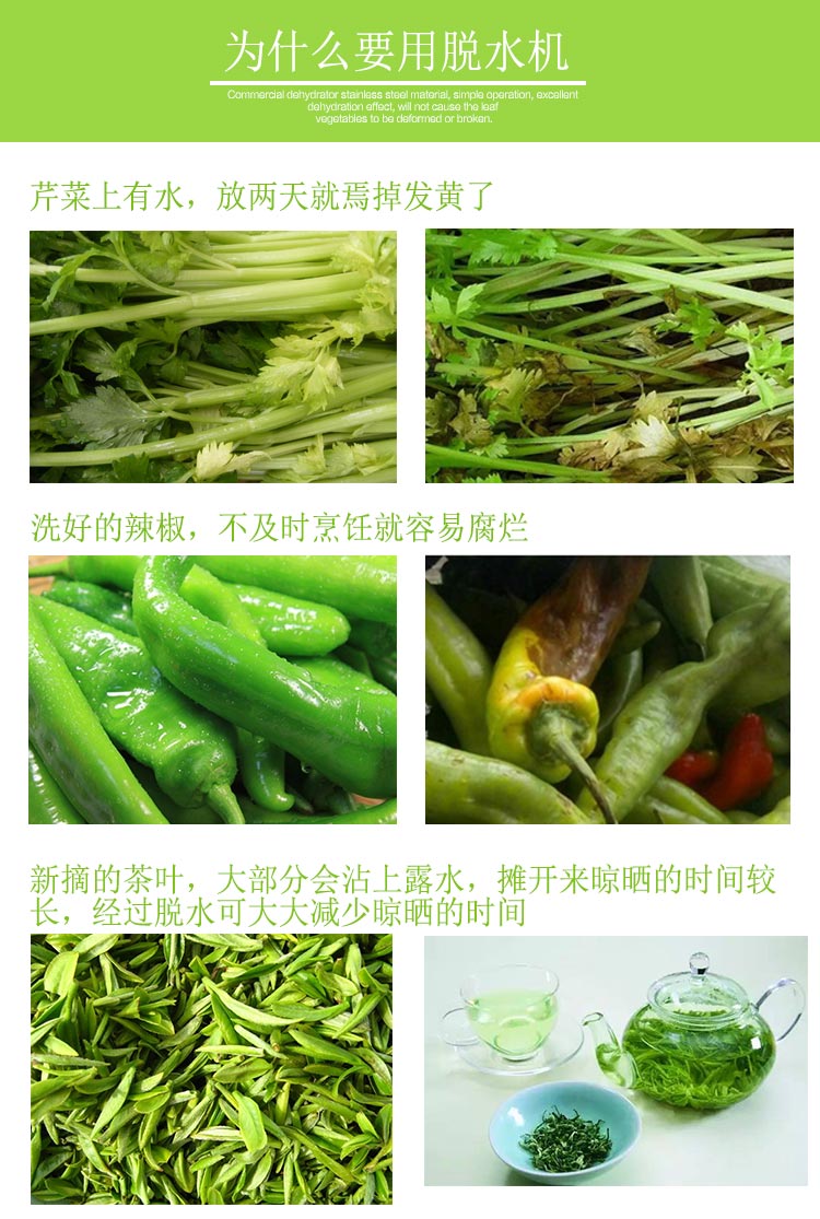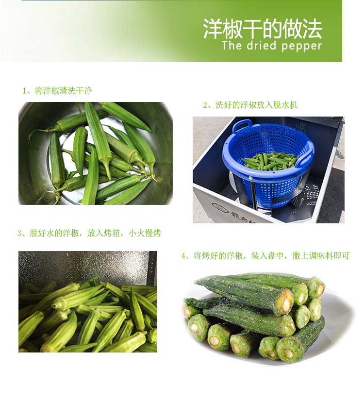 為什么要用脫水機呢?脫水機有什么用? 菜葉上有水,放兩天就焉掉發(fā)黃了,洗好的辣椒或水果,沒擦干就容易腐爛。大容量脫水機,蔬菜加工好幫手,甩水性強,動力足,效率高。將需要脫水的蔬菜,裝入網(wǎng)袋,然后關上機器蓋,即可開始脫水。可脫葉菜類,根莖類蔬菜。 洋椒干的做法 1、將洋椒洗干凈。 2、洗好的洋椒放入脫水機進行脫水 3、脫好水的洋椒,放入烤箱,小火慢烤 4、將烤好的洋椒,裝入盤中,撒上調(diào)味料即可。