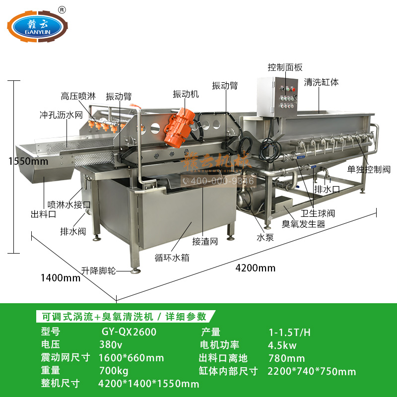 主頁-> 果蔬加工機械->凈菜加工設(shè)備->可調(diào)式渦流+臭氧清洗機