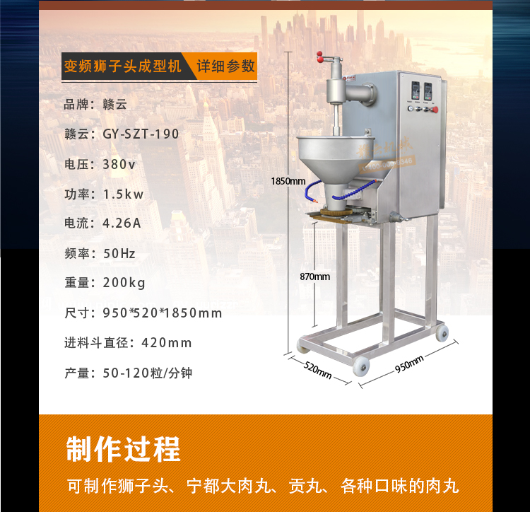 肉丸成型機(jī)械->實(shí)心肉丸機(jī)->190型變頻獅子頭機(jī) | |||||||