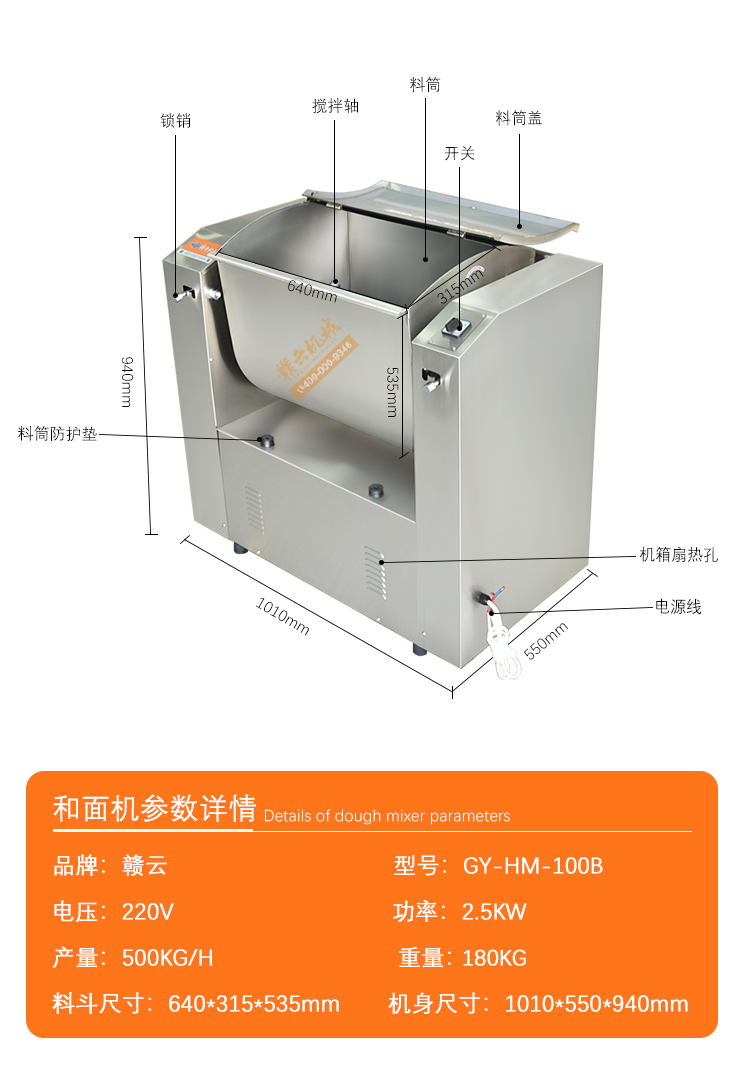 本機(jī)適用于食堂、飲食店、賓館、食品廠的糧食加工和化工原料、工業(yè)粉末攪拌等用途。攪拌料筒體采用不銹鋼板,防污、防銹性能良好。