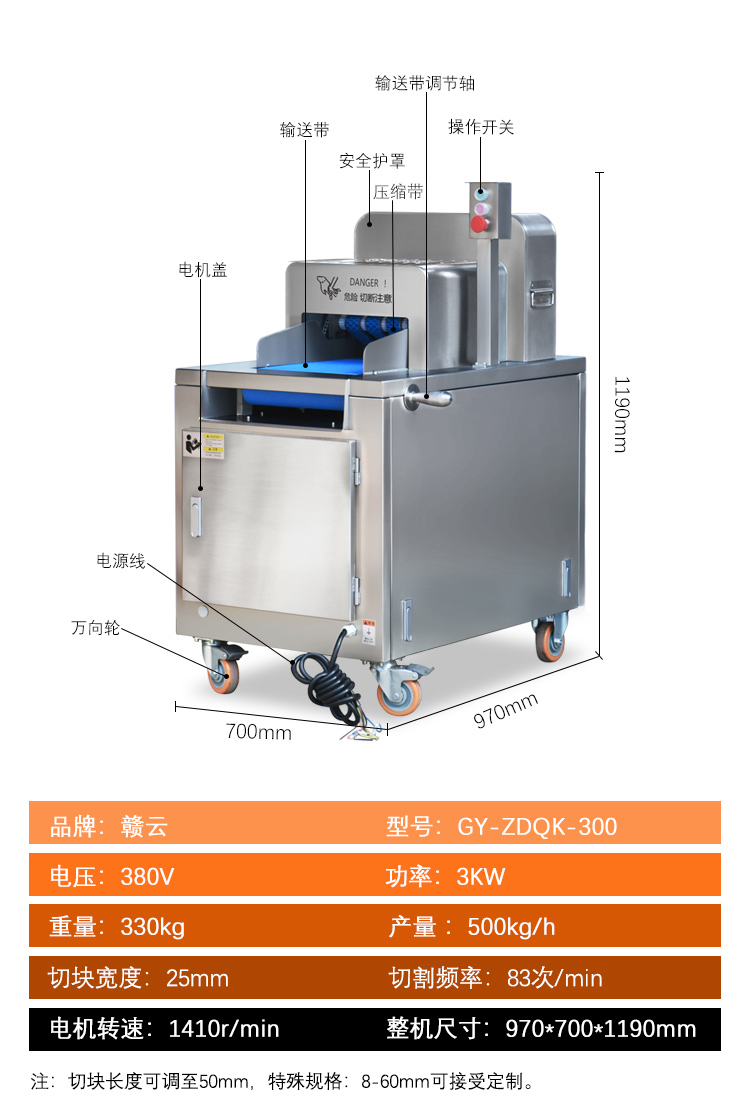 肉制品前處理->骨類加工設(shè)備->新款智能切塊機(jī) | |||||||