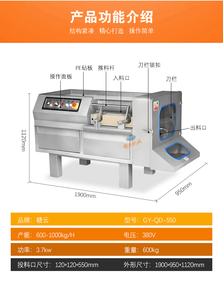 主頁-> 肉制品前處理->凍肉加工設(shè)備->550型家禽切肉丁機(jī)