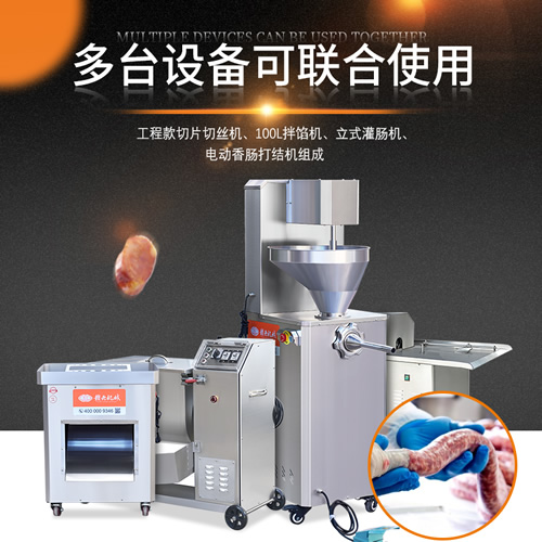 贛云牌立式全自動灌腸機,根據(jù)多次的機器實地使用和存在不足之處反復改造后的全新配置升級,采用不銹鋼機身,機頭使用可拆卸,方便機器清洗,速度平衡穩(wěn)定,不銹鋼機身,腳踏控制灌腸,大功率電機,無論是四川香腸、湖南臘腸、脆皮腸、山東香腸、廣式臘腸還是河南臘腸都適用,一機多用,設備滿足多重風味香腸制作,新升級的機器加寬加大入料口,讓您進料順暢不卡料,灌腸機可以與多臺設備聯(lián)合使用,可與切片切絲機,拌餡機,灌腸機,香腸打結機組成,提高您的生產(chǎn)效率。