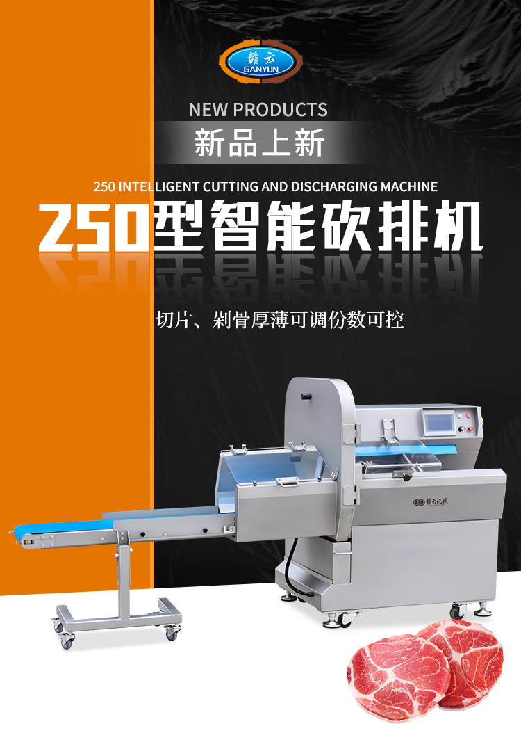 250型智能砍排機,新品上市,你還在手工剁骨頭?,手工剁骨頭大小不一,效率低下,骨頭不好穩(wěn)定固定,要有力氣還得有技術,贛云250型砍排機讓你告別傳統(tǒng)菜刀,解放雙手,只要一款機器,可以滿足多種食材切片、骨類切塊。