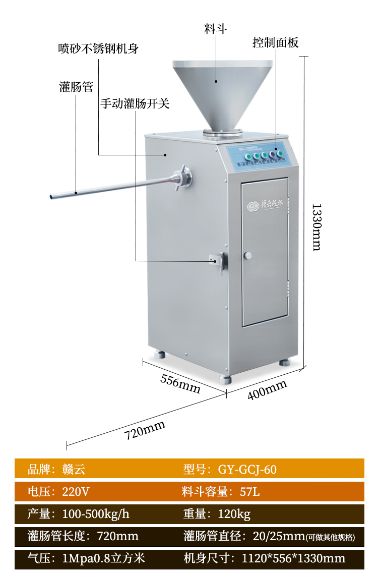 主頁-> 肉制品前處理->專用灌腸設(shè)備->氣動灌火腿腸打卡一體機(jī)