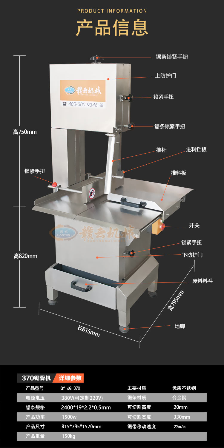 370型商用鋸骨機,食品機械生產(chǎn)制造,質(zhì)量鑄就贛云品牌!好品質(zhì),值得信賴。