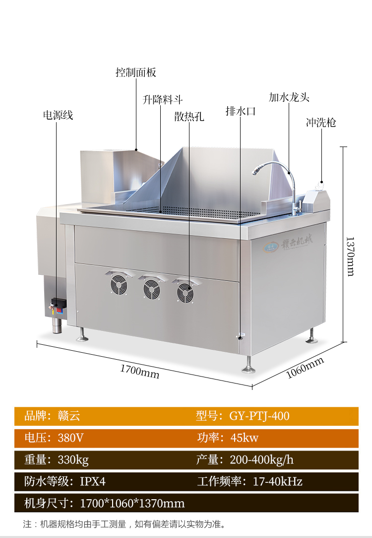 主頁-> 中央廚房設(shè)備->熱調(diào)理區(qū)設(shè)備->400L方形自動漂燙機/焯水/油炸機