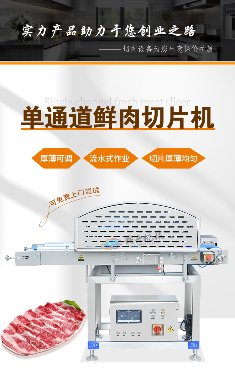 通道式切鮮肉機(jī)適用于將各種鮮肉的一次切分成多片。