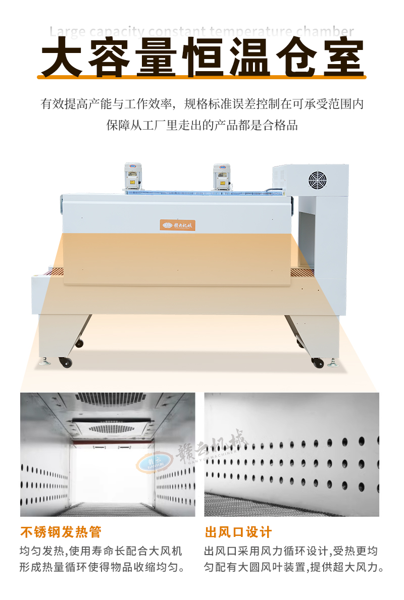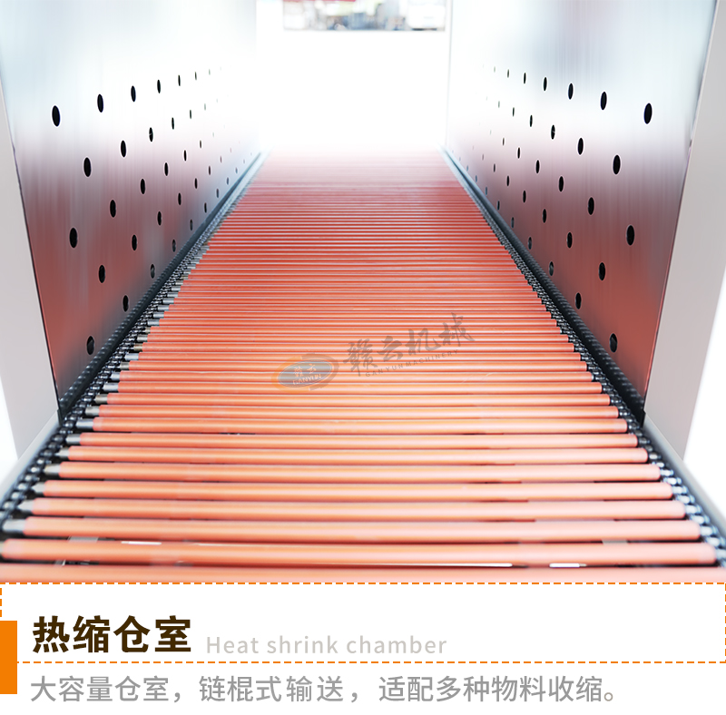 適用于飲料、酒水、礦泉水瓶、五金材料、裝修材料等外包裝自動套膜收縮等。