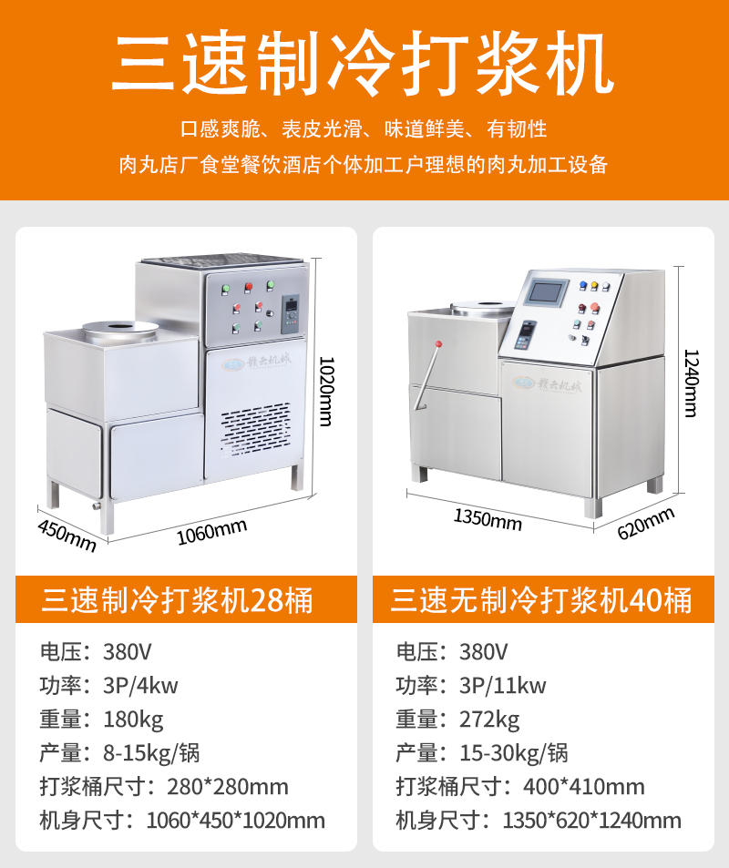 用于魚丸、牛肉丸、豬肉丸等食品的制冷打漿處理,集成自動(dòng)上料、調(diào)速與制冷鎖鮮功能,適用于食品加工廠/肉丸食品廠等。