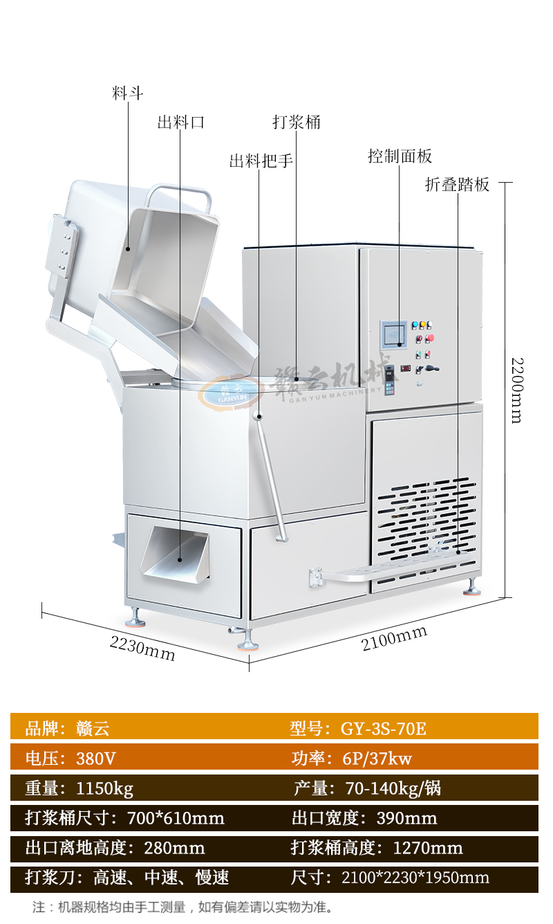 主頁(yè)-> 肉丸打漿機(jī)械->調(diào)速打漿機(jī)->70桶三速制冷打漿機(jī)(帶自動(dòng)上料)