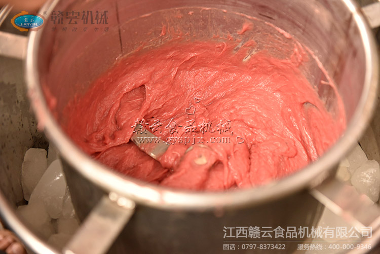 本次試機(jī)主要采用了32型強(qiáng)力絞肉機(jī)、28型高速肉丸打漿機(jī)和贛云第三代包心肉丸機(jī),由于市場(chǎng)購(gòu)買的是新鮮牛肉,所以原定計(jì)劃采用變頻慢速肉丸打漿機(jī)試機(jī)的臨時(shí)改為高速肉丸打漿機(jī)。