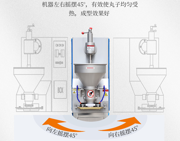 多功能性:左右搖擺肉丸機可以制作各種不同口味的肉丸,比如:魚丸、蝦肉丸、豬肉丸、牛肉丸、獅子頭肉丸、素丸等。同時它還可以通過更換切刀,成型不同大小的肉丸。