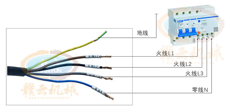 1、機(jī)器放水平地面上,讓機(jī)器設(shè)備整體平穩(wěn)、所有支撐腳都接觸到地面,對設(shè)備進(jìn)行搖晃測試后不會(huì)出現(xiàn)搖晃現(xiàn)象。請將三相四線安全正確接入空氣開關(guān)內(nèi),并確保該空氣開關(guān)或閘刀保險(xiǎn)容量符合設(shè)備功率運(yùn)轉(zhuǎn)。(空氣開關(guān)63A以上為佳)