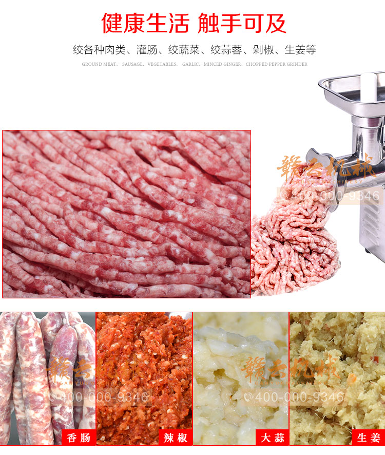 小型絞肉機(jī)適用于任何酒店、飯店、食堂、餐廳等。有不同規(guī)格的立式、臺(tái)式機(jī)型,省電省電,經(jīng)久耐用,方便快捷,電動(dòng)絞肉機(jī),外形美觀,效率高,功耗低。同時(shí),價(jià)格低廠家直銷的價(jià)格,可靠的質(zhì)量,先進(jìn)的高級(jí)不銹鋼,經(jīng)久耐用,可長(zhǎng)時(shí)間使用,絞肉餡效果好,性能穩(wěn)定,采用進(jìn)口的銅芯電機(jī),人性化設(shè)計(jì),安全可靠,不僅有設(shè)計(jì)安全的裝置,并且在絞肉的時(shí)候配有與任何肉類可以攪拌攪拌軸,無(wú)任何不安全因素,可以按照工藝要求切成顆;蛉饽,便于和其他輔料混合,鮮肉絞肉機(jī)器滿足不同肉制品的需要,小型絞肉機(jī)具有操作簡(jiǎn)單,價(jià)格低,質(zhì)量好。贛云食品機(jī)械為您提供各自肉制品加工設(shè)備,歡迎您前來(lái)了解。
