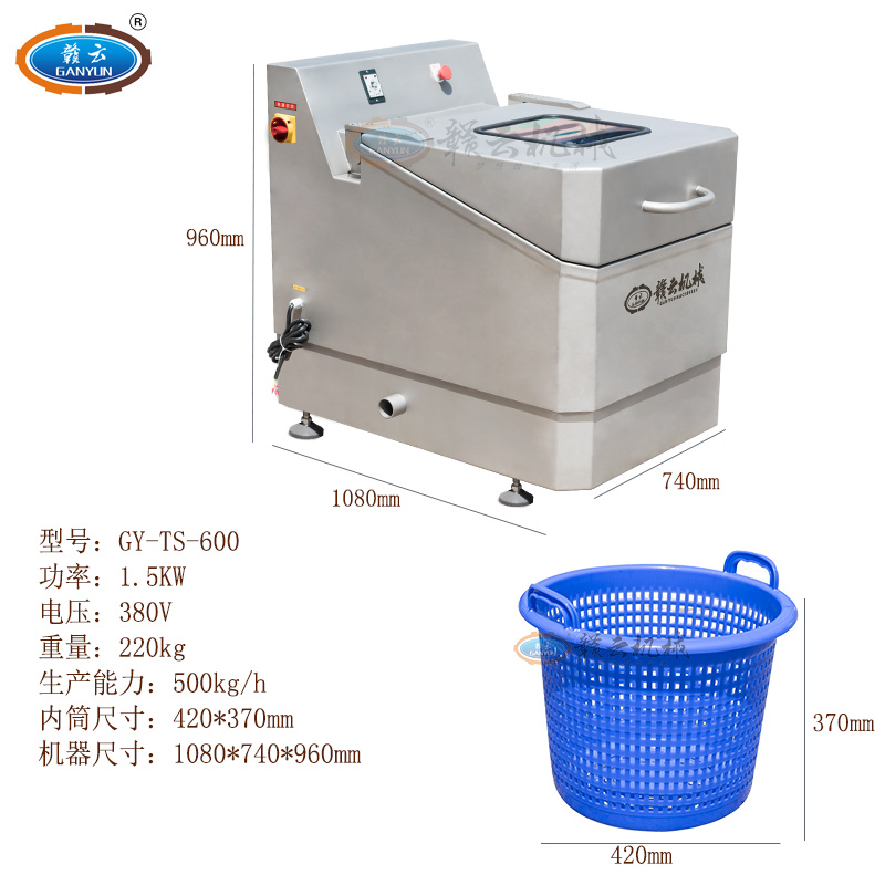 脫水機(jī)采用離心脫水原理,整機(jī)運(yùn)轉(zhuǎn)平穩(wěn),安全高效,方便衛(wèi)生,經(jīng)久耐用。脫水機(jī)是蔬菜加工的好幫手,甩水性強(qiáng),動(dòng)力足,效率高。采用現(xiàn)代食品機(jī)械理念設(shè)計(jì)和先進(jìn)食品機(jī)械制造工藝制作。整機(jī)采用不銹鋼SUS304材質(zhì)。使用衛(wèi)生可靠,符合食品行業(yè)實(shí)際要求的需要。