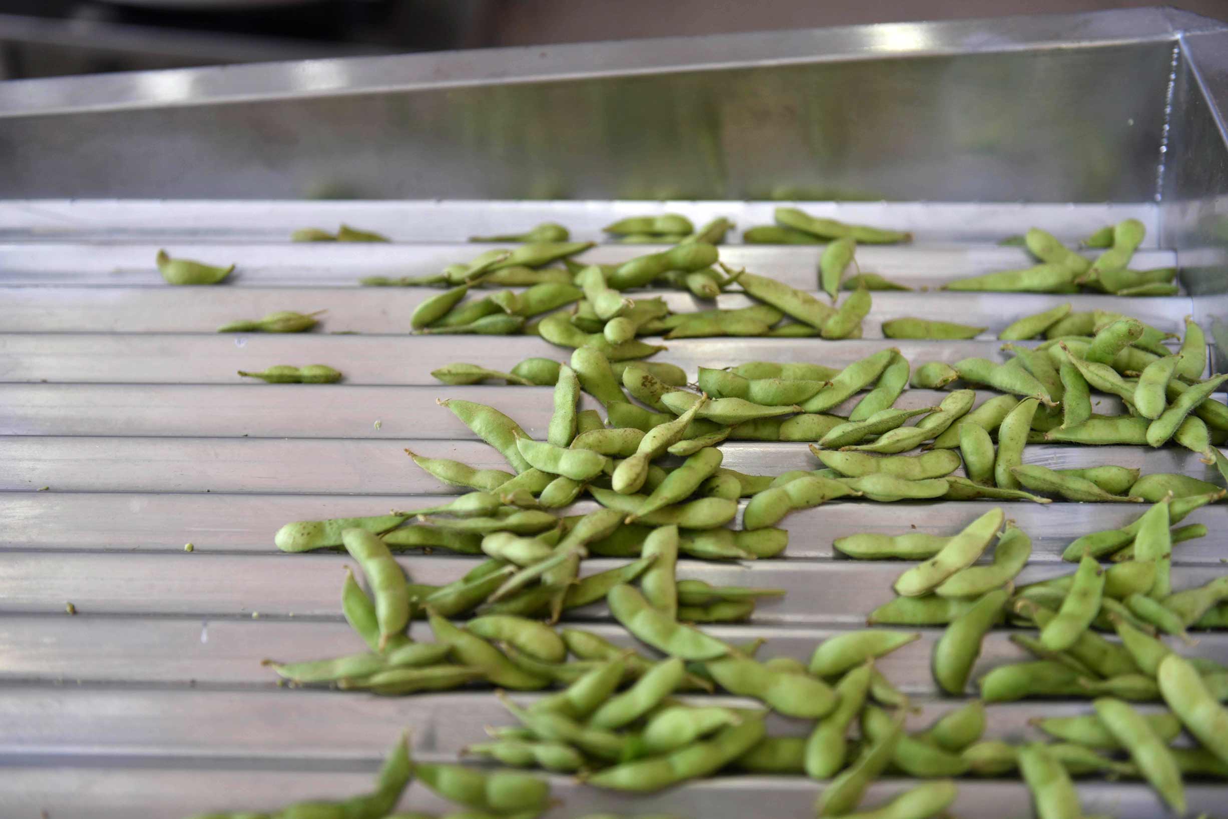 另一款是毛豆脫皮機(jī),這款機(jī)器的特點(diǎn)是剝出來(lái)的毛豆帶衣,顆粒飽滿。以下是試機(jī)效果