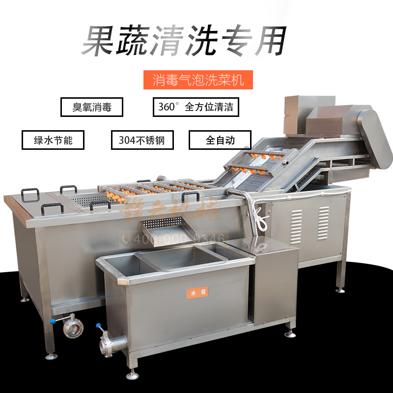 1、蔬菜清洗機:蔬菜清洗機采用汽泡水浴清洗,蔬菜清洗機中設有氣泡發(fā)生裝 置,使物料呈翻滾狀態(tài),去除產(chǎn)品表面農(nóng)殘功效,同時可加入適量的藥劑,進行 消毒固色,漂浮物可以從溢流槽溢出,沉淀物從排污口排出,以達到清洗的目的。