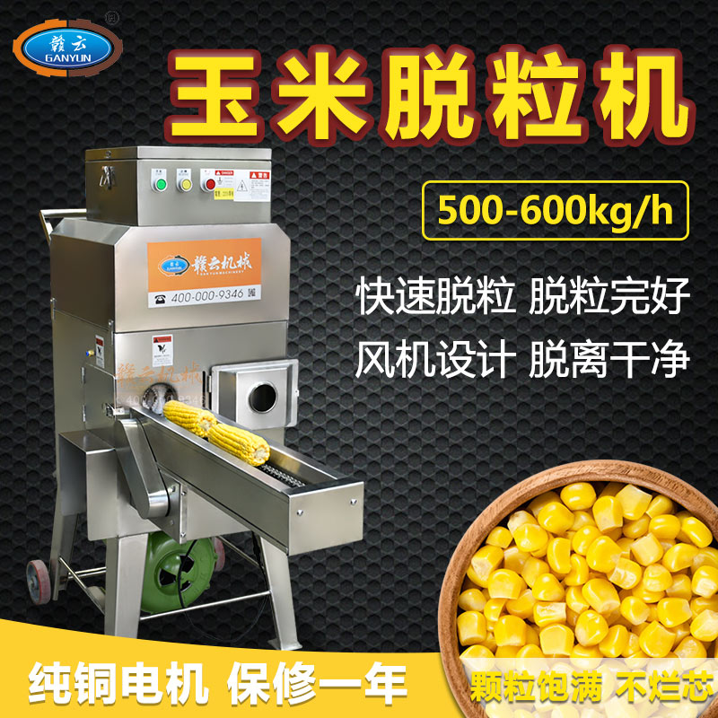 贛云自動玉米脫粒機操作簡單,適合各種鮮、甜、糯玉米、凍玉米解凍后脫粒。整機采用全不銹鋼制造,配合腳輪移動方便;變頻器控速、操作簡單;入料口處配有鏈條進給裝置,有效地提高了工作效率(此裝置可根據(jù)需要裝卸);輥軸可根據(jù)玉米棒大小自動調(diào)節(jié),適合各種大小玉米的脫粒,脫粒深淺可調(diào);出料口配有鼓風(fēng)機使脫后的玉米粒更加干凈。