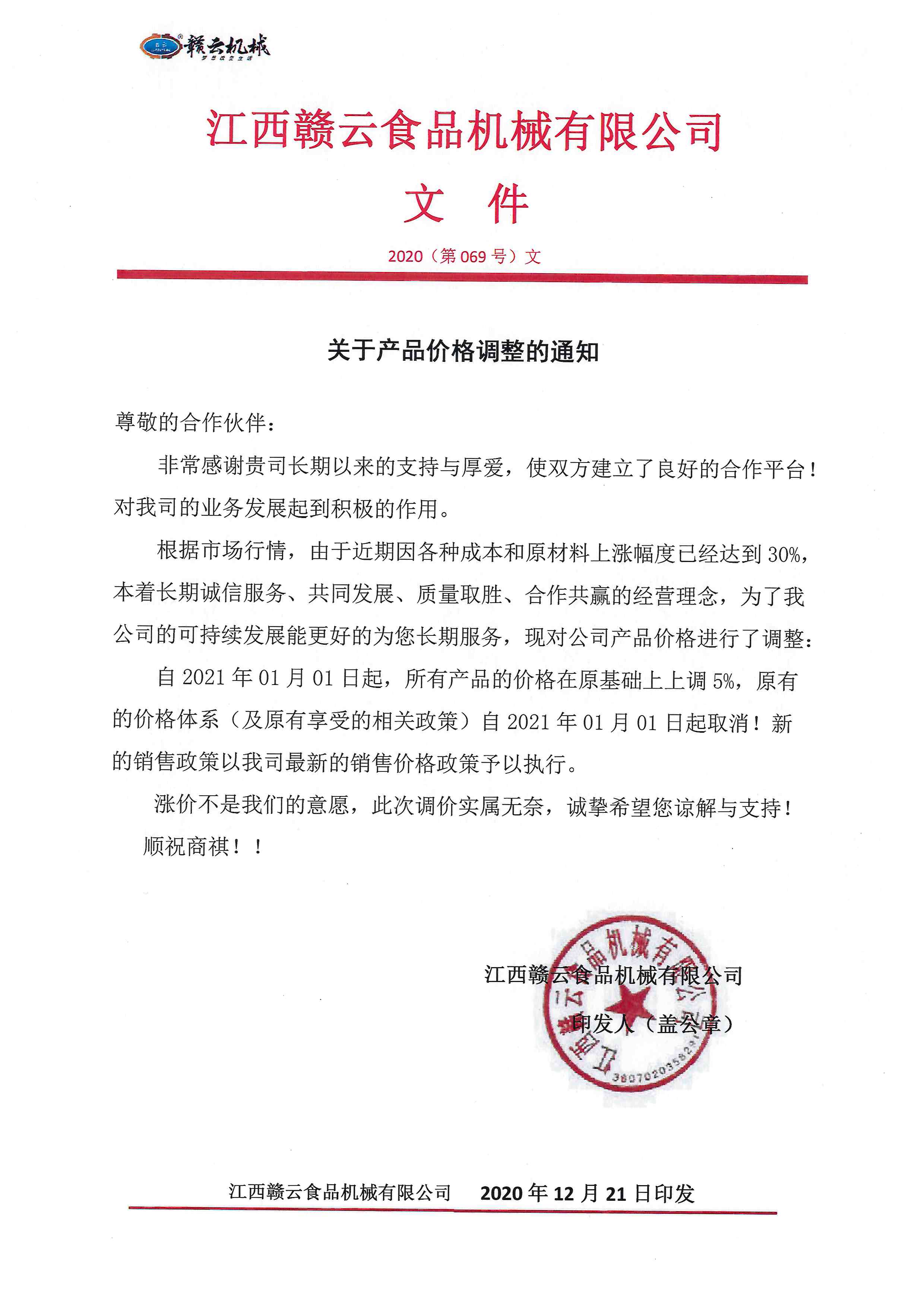 [緊急通知]2021年1月1日起所有設(shè)備正式漲價