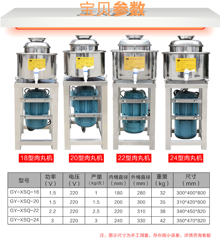 18型肉丸機(jī)(全不銹鋼)技術(shù)參數(shù)僅供參考
